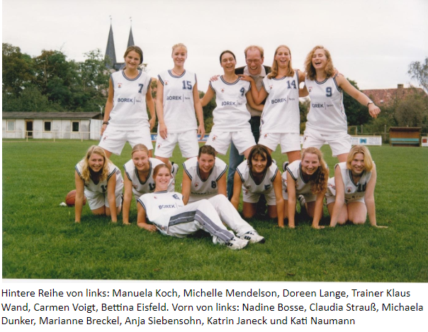 V<ordere Reihe von links: Michaela Dunker, Nadine Bosse, Anja Siebensohn und Bettina Eisfeld. Trainer bleibt Klaus Wand.